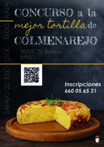 Siguiendo con la programación establecida, como es habitual cada año, el próximo sábado 22 de julio a las 12:00 en la plaza se realizará el CONCURSO A LA MEJOR TORTILLA DE COLMENAREJO 2023.