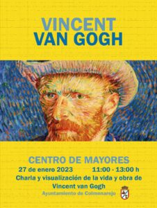 El 27 de enero en el Centro de Mayores se dará una charla y visualización de su vida y obra de VICENT VAN GOGH, en horario de 11:00 a 13:00 horas.