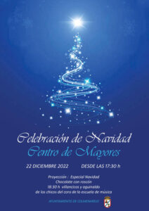 El pr贸ximo 22 de Diciembre de 2022 tendr谩 lugar una celebraci贸n de la Navidad en el Centro de Mayores desde las 17:30 h.