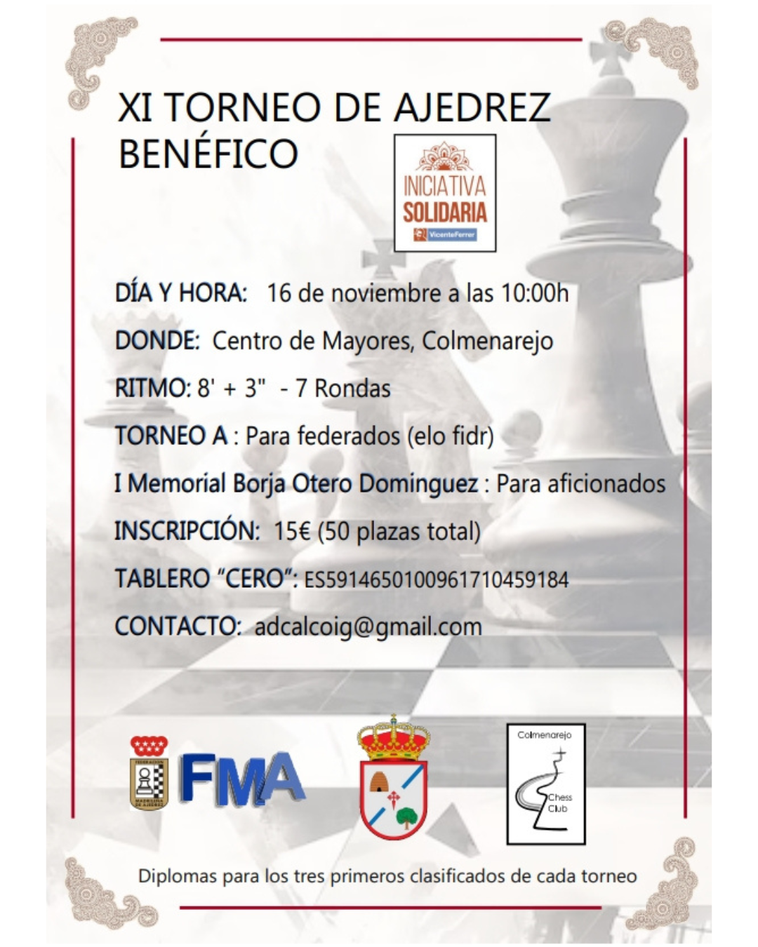 #Ajedrez #TorneoSolidario #Colmenarejo #VicenteFerrer #AjedrezSolidario