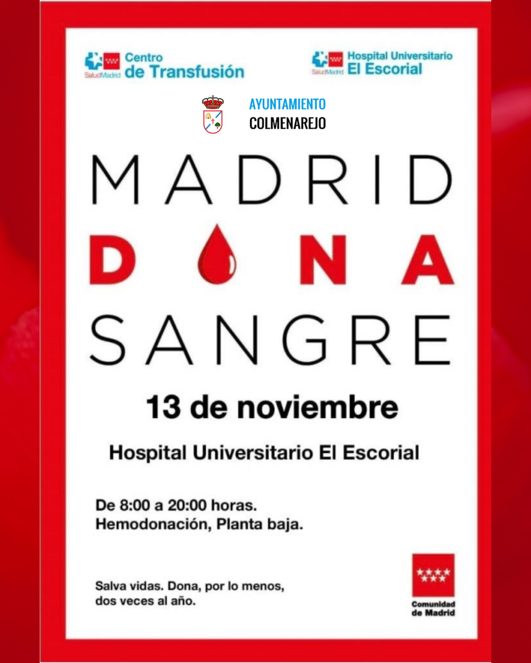 El próximo 13 de noviembre te esperamos en el Hospital Universitario de El Escorial para participar en el Maratón de Donación de Sangre.