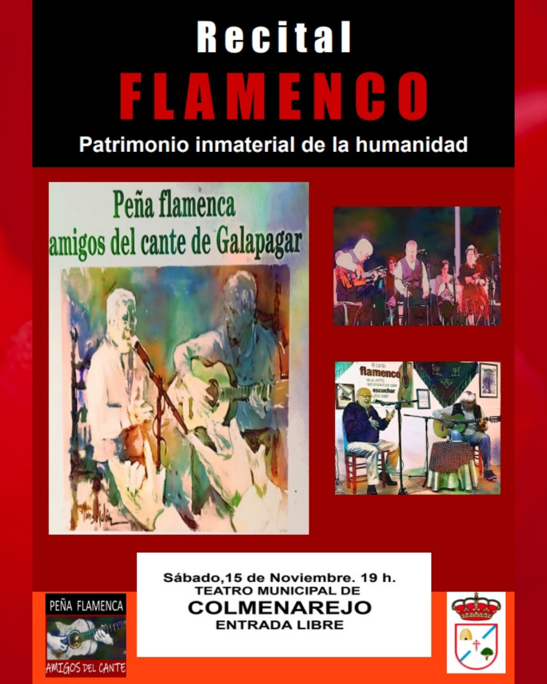 La Asociación de Flamenco de Galapagar (Amigos del Cante) actuará en Colmenarejo para conmemorar el día del Flamenco, nombrado Patrimonio Cultural Inmaterial de la Humanidad por la Unesco el 16 de noviembre de 2010.
