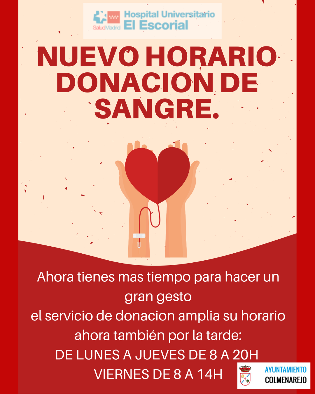 NUEVO HORARIO DONACIÓN DE SANGRE🩸