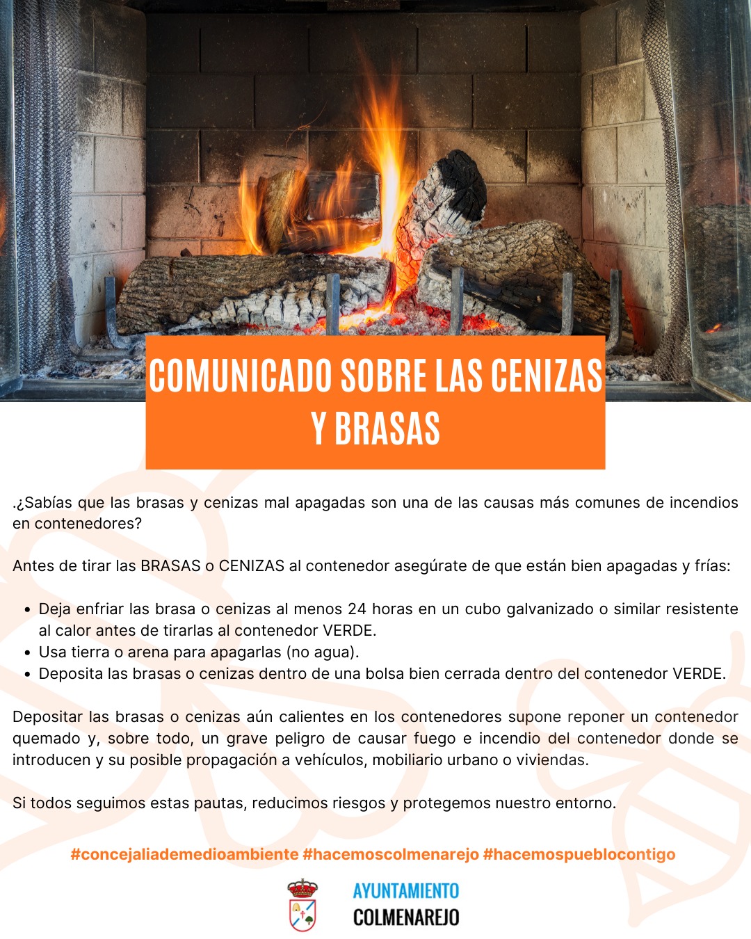 Antes de tirar las BRASAS o CENIZAS al contenedor asegúrate de que están bien apagadas y frías:
