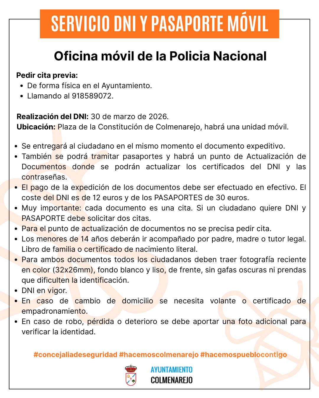¡RENUEVA TU DNI O PASAPORTE SIN SALIR DE COLMENAREJO!‼️