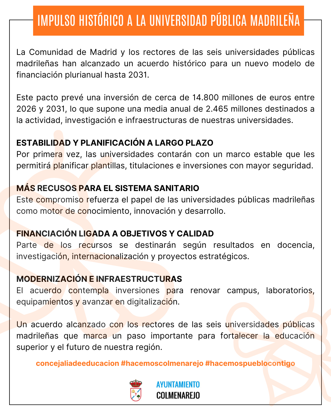 Este compromiso refuerza el papel de las universidades públicas madrileñas como motor de conocimiento, innovación y desarrollo.