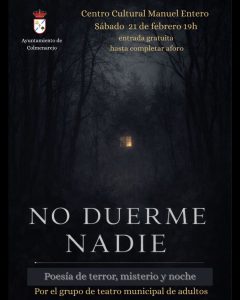 Los alum@s de la Escuela de Teatro Municipal de adultos nos ofrecen un recital de poesía de misterio, un encuentro íntimo entre teatro y literatura.