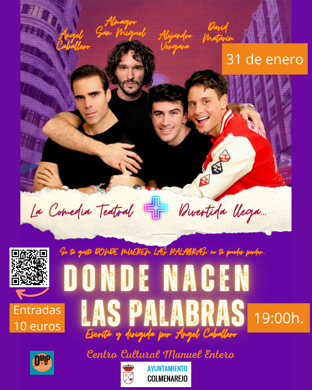 🎟️Precio: 10 euros. Venta de entradas en El Centro Cultural Manuel Entero u online a través del código QR o del 🔗 https://www.flowte.me/storefront/teatro-de-colmenarejo.